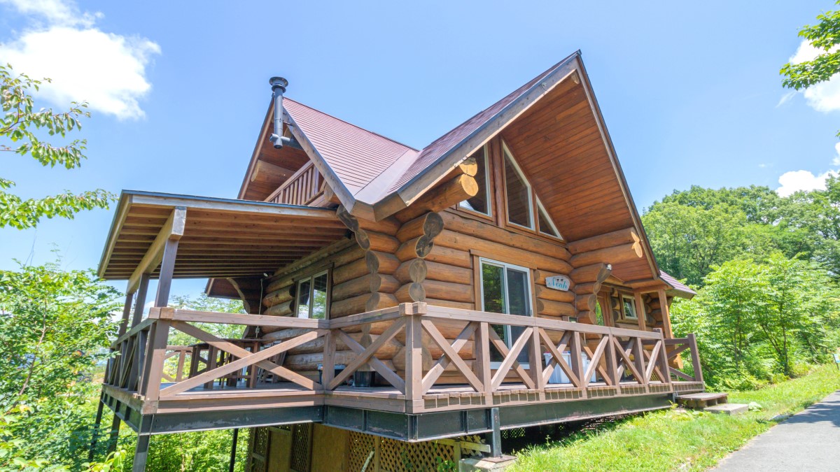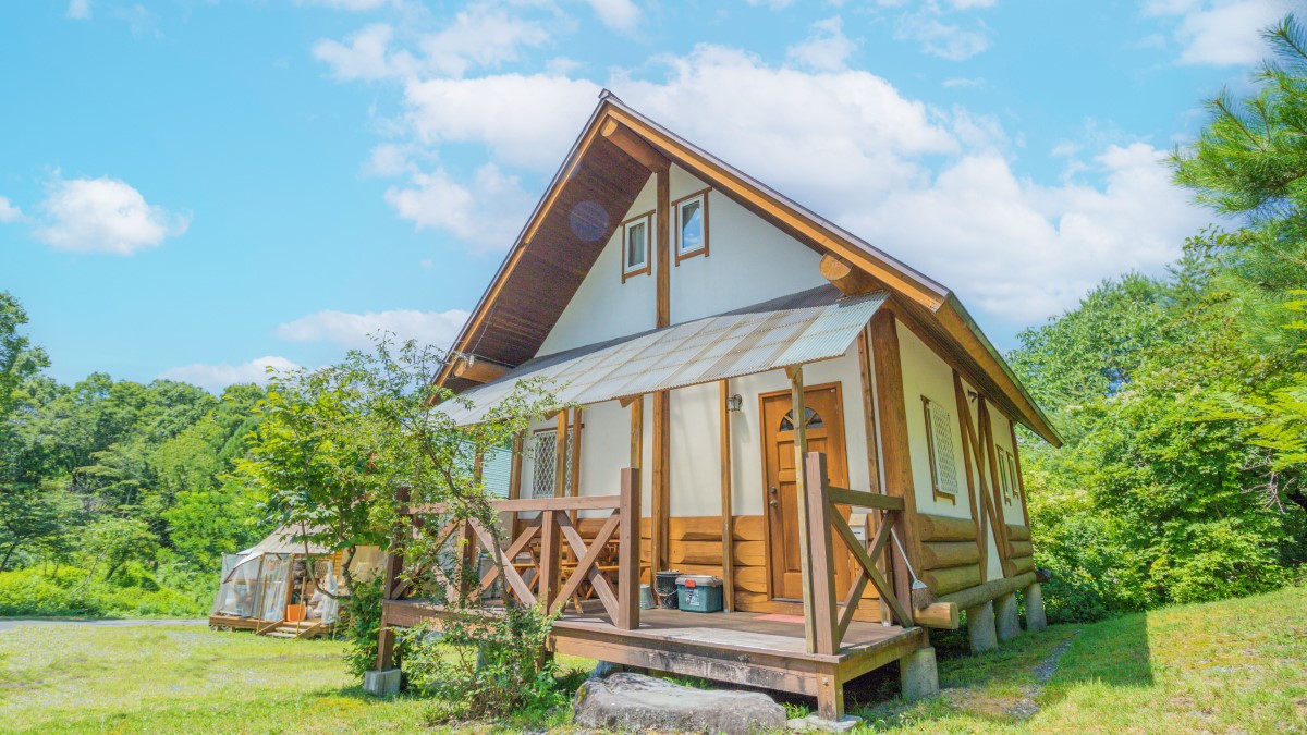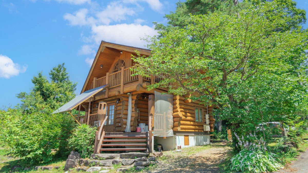 大きな丸太を使ったハンドカットのログハウス。雨でも安心な広いウッドデッキがあるのでいつでもBBQが楽しめます。1階と2階に2つのベッド仕様の寝室があるのでプライバシーも保たれます。2家族やグループでの利用時でも使いやすいのが魅力です。 |