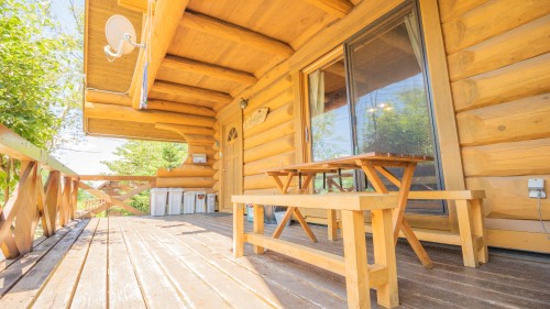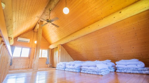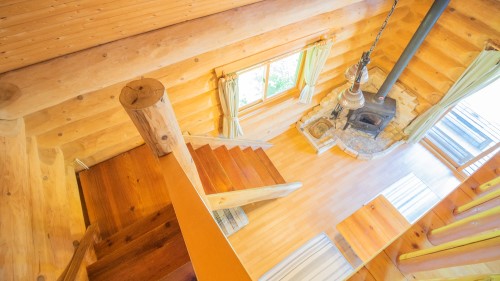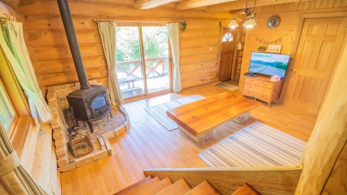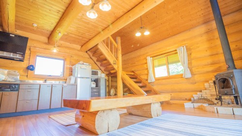 “ゆったり”という意味の名前がつけられたAdagio(アダージョ)。入口にある広めのデッキは屋根があるので雨の日でもご利用いただけます。2階のロフトも広めの造りで就寝時も気持ちよくお寛ぎいただけます。北米産レッドシダーを使った重厚なハンドカットログハウスの室内でゆっくりお過ごしください。Adagioのすぐ横にはNoahも建っています。大人数や2家族様でのご利用の際はお隣同士での利用もおススメです。