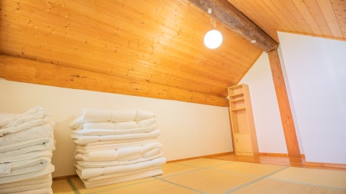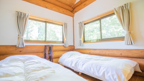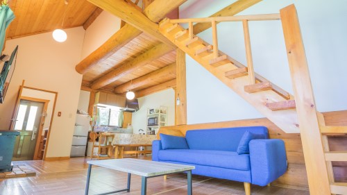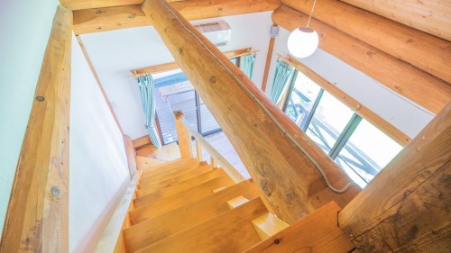 ポスト&ビームで造られたRoti。ポスト&ビームとは柱と梁を丸太のまま使用し壁は在来工法と同じように作るちょっと珍しい工法です。Rotiには独立したベッドルームを設けてあり、2階も個室仕様となっています。