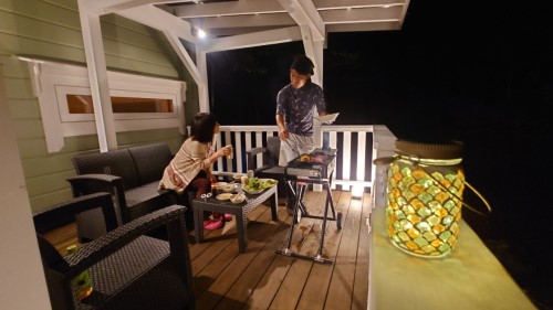 ジャグジーバス(凍結時使用不可)・アウトドアチェア&テーブル・ハンモック・プロジェクタースクリーン